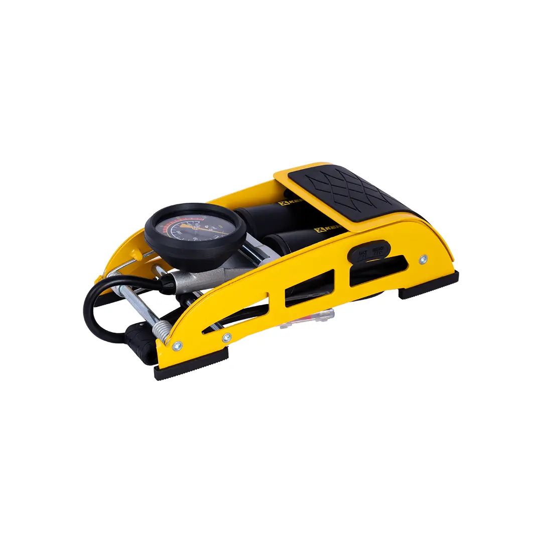 پایه این تلمبه از فلز مقاوم ساخته شده است که دوام و طول عمر بالایی را تضمین میکند. پدال بزرگ با روکش لاستیکی ضد لغزش، استفاده از تلمبه را در شرایط مختلف آسان میسازد.