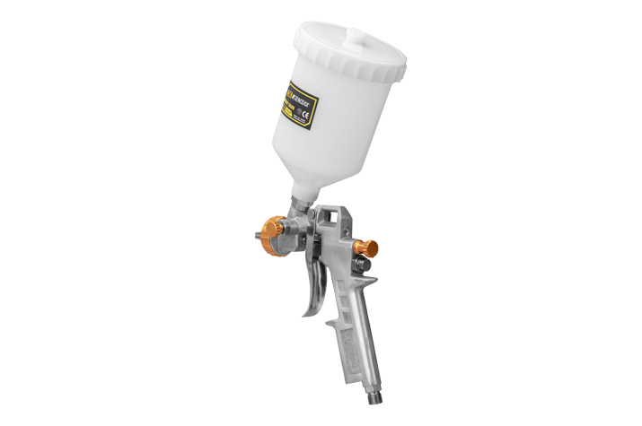 پیستوله بادی دو تنظیم KSG-S990 کنزاکس یک پیستوله دو تنظیم با مخزن پلاستیکی شفاف و مقاوم با ظرفیت 600 سی سی می باشد و فشار کاری آن 3.5 بار یا PSI 50 است که با نازل 1.6 و 1.8 میلی متر با حجم هوای مصرفی 4.8 CFM این عمل را انجام می دهد. این پیستوله سیستم رنگ پاشی HVLP و دارای پیچ تنظیم میزان خروجی. همچنین بدنه ی محصول آلومینیوم است و نازل از جنس برنج است. طراحی دسته این محصول ارگونومیک بوده و از مواد درجه یک و با کیفیت تولید شده است
